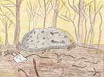 una roccia sulla collina morenica di Rivoli, riprodotta frontalmente