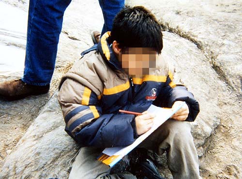 Nella foto vedo il mio compagno Moreno che sta disegnando l'Arco Romano (Khalil)